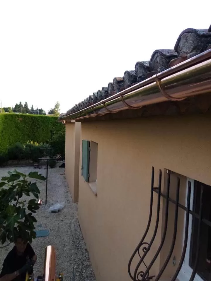 Votre zingueur à Montségur-sur-Lauzon a réalisé la pose de chenaux en cuivre sur une maison.